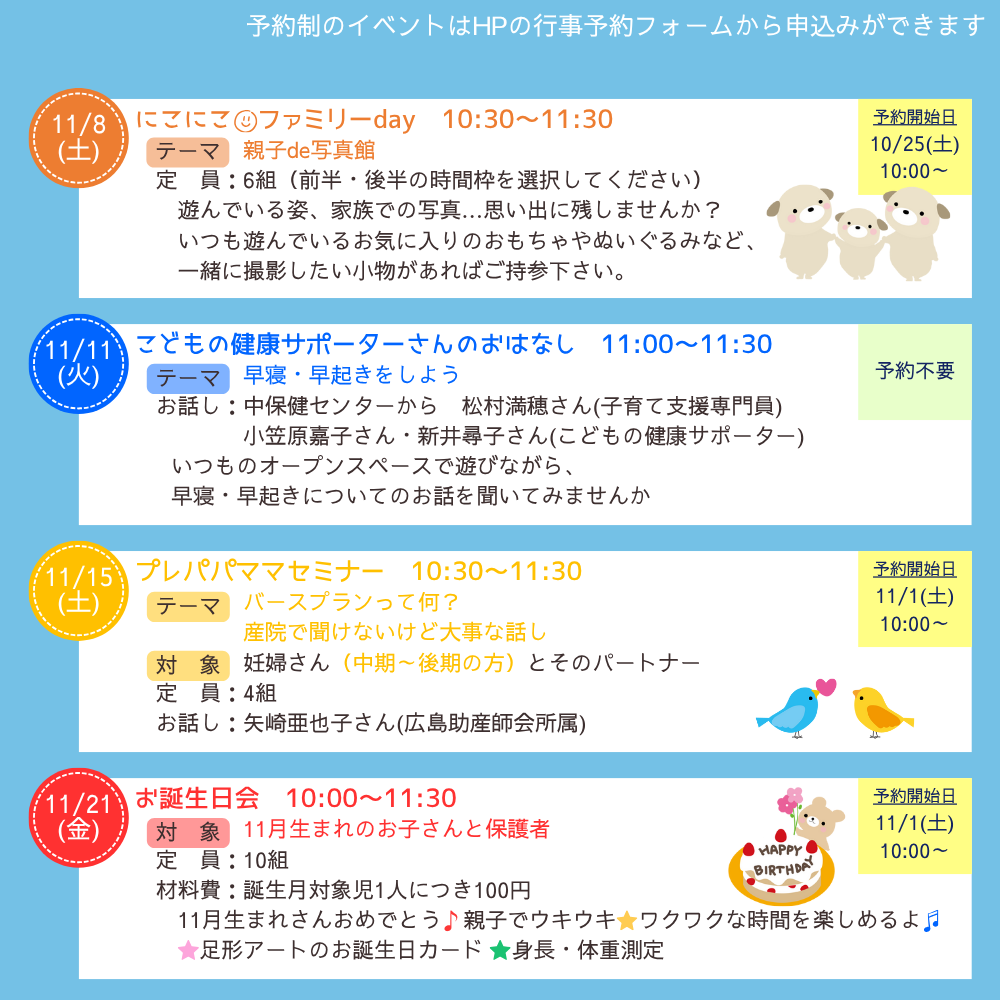 11/11(火)にこどもの健康サポーターさんのおはなしを開催予定です。