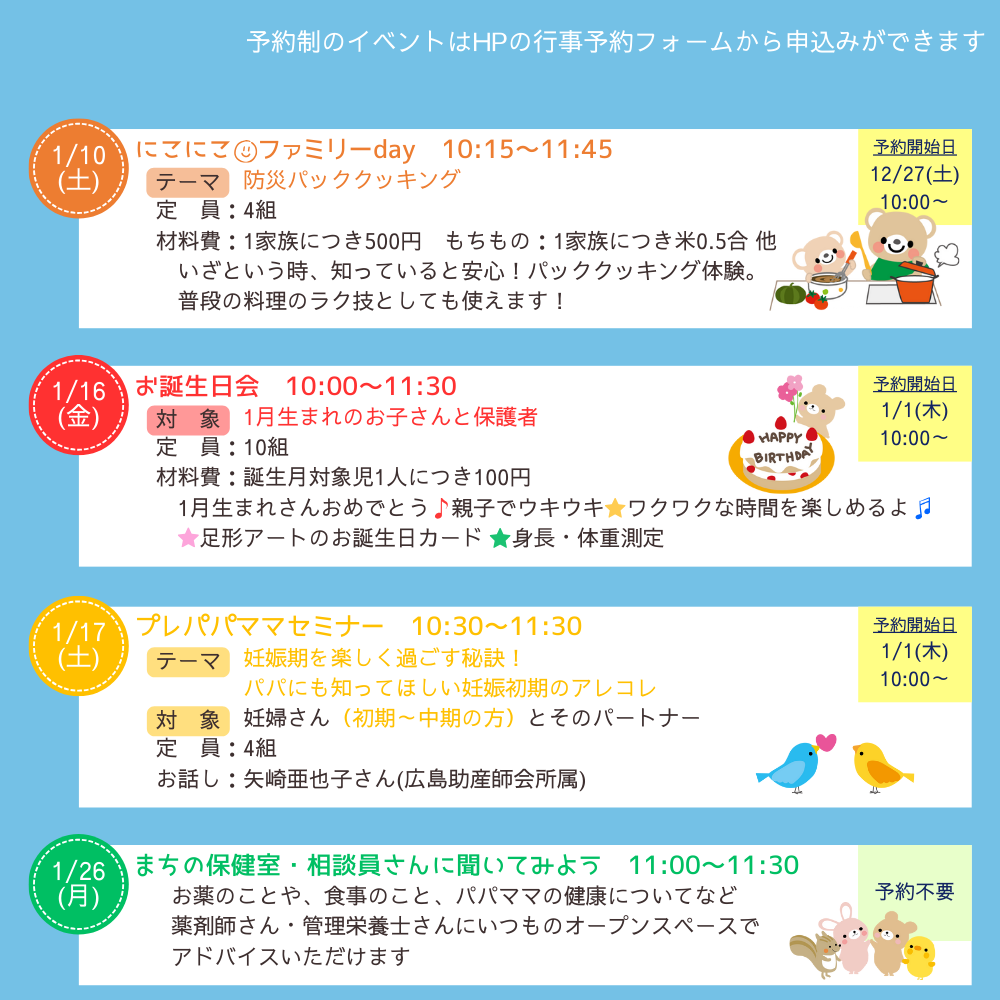1/10(土)には にこにこファミリーday 防災パッククッキングを開催予定です。